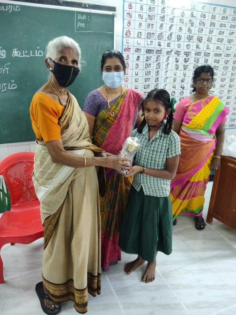 Today awarded best performed to a student in government school She is in 5th std. Cash prize of Rs 1000 has been given along with price cup and book materials. This price has been sponsored by my college friend ramdoss in the name of his mother jayalakshmi